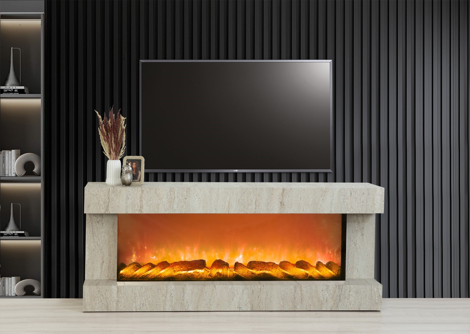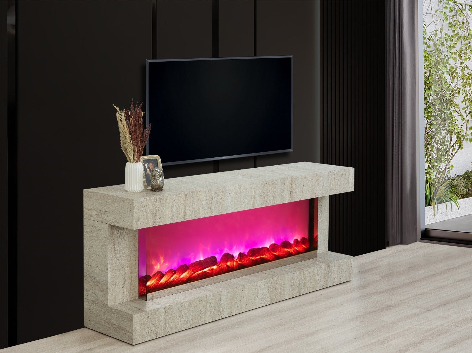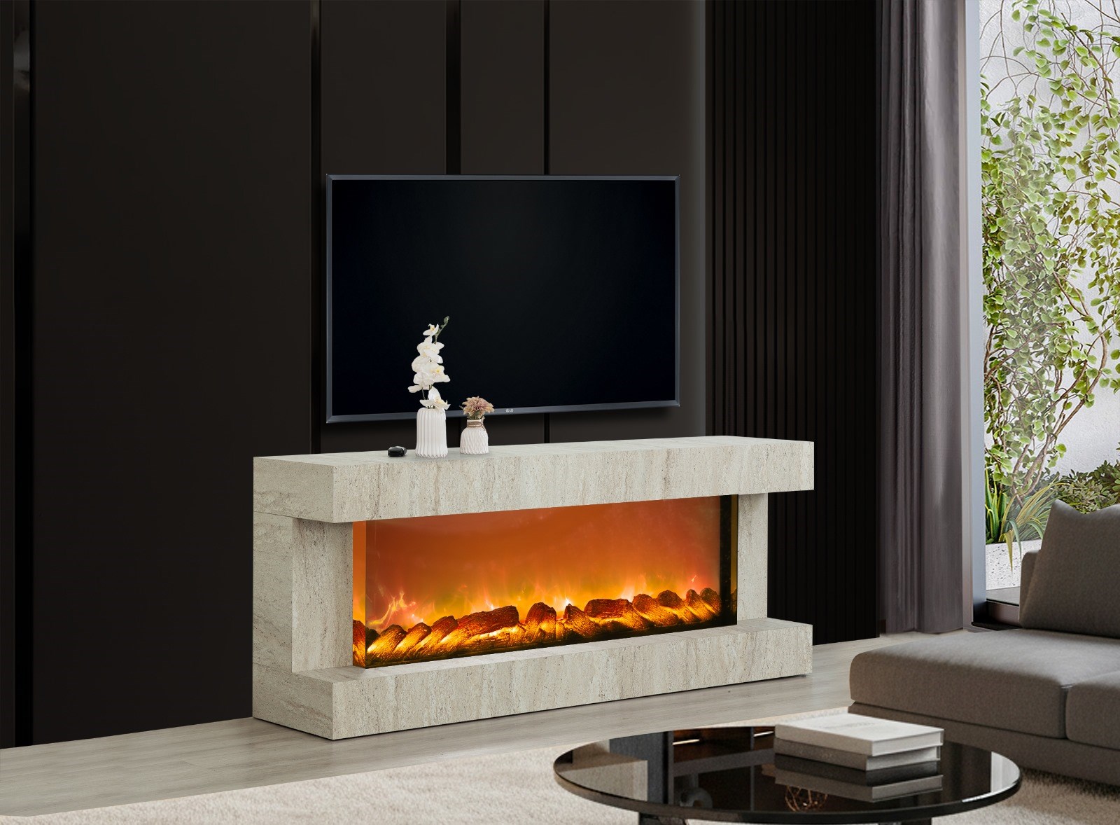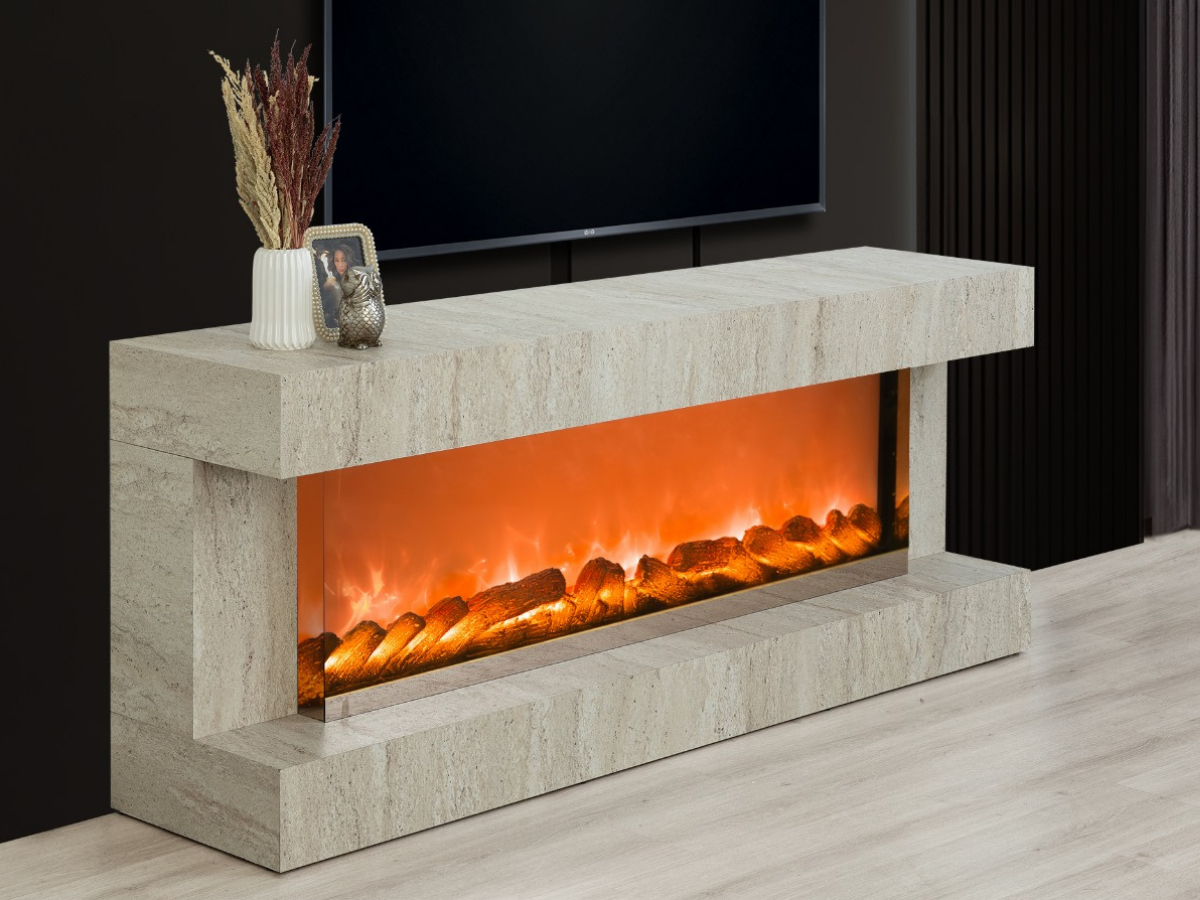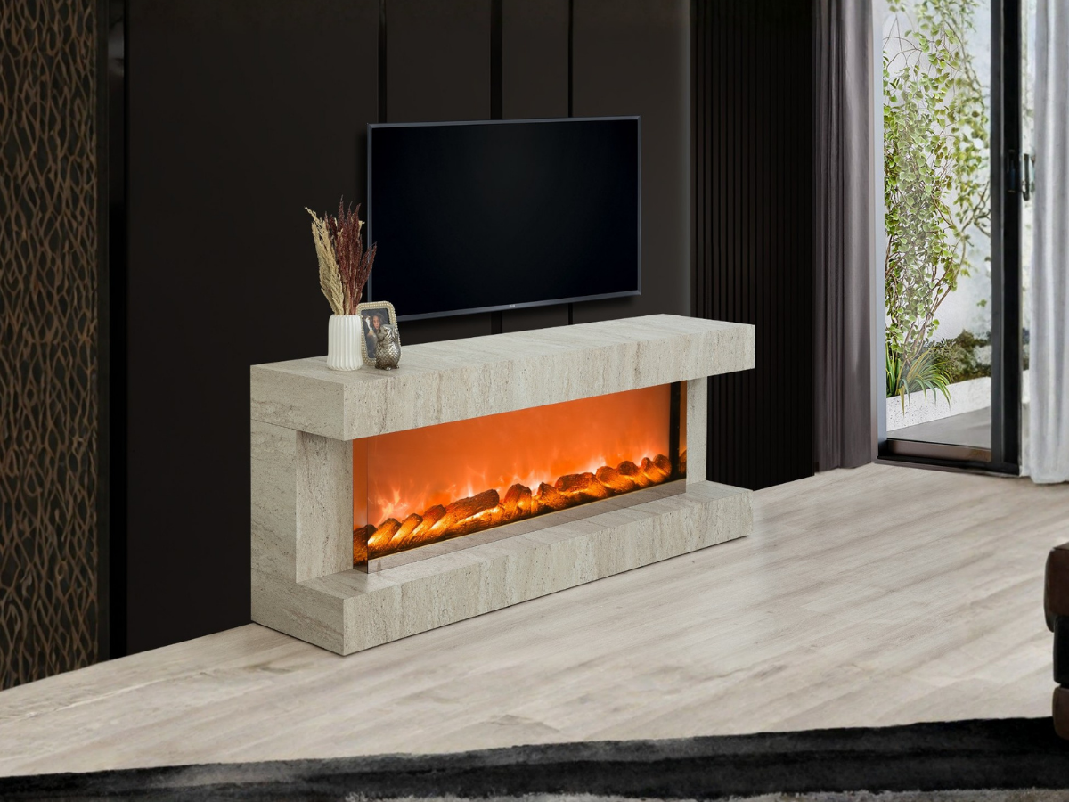 Aren Mdf Traverten Bluetooth ve Renk Değişim Özellikli Şömineli Tv Ünitesi (ARNTRVRTN1)