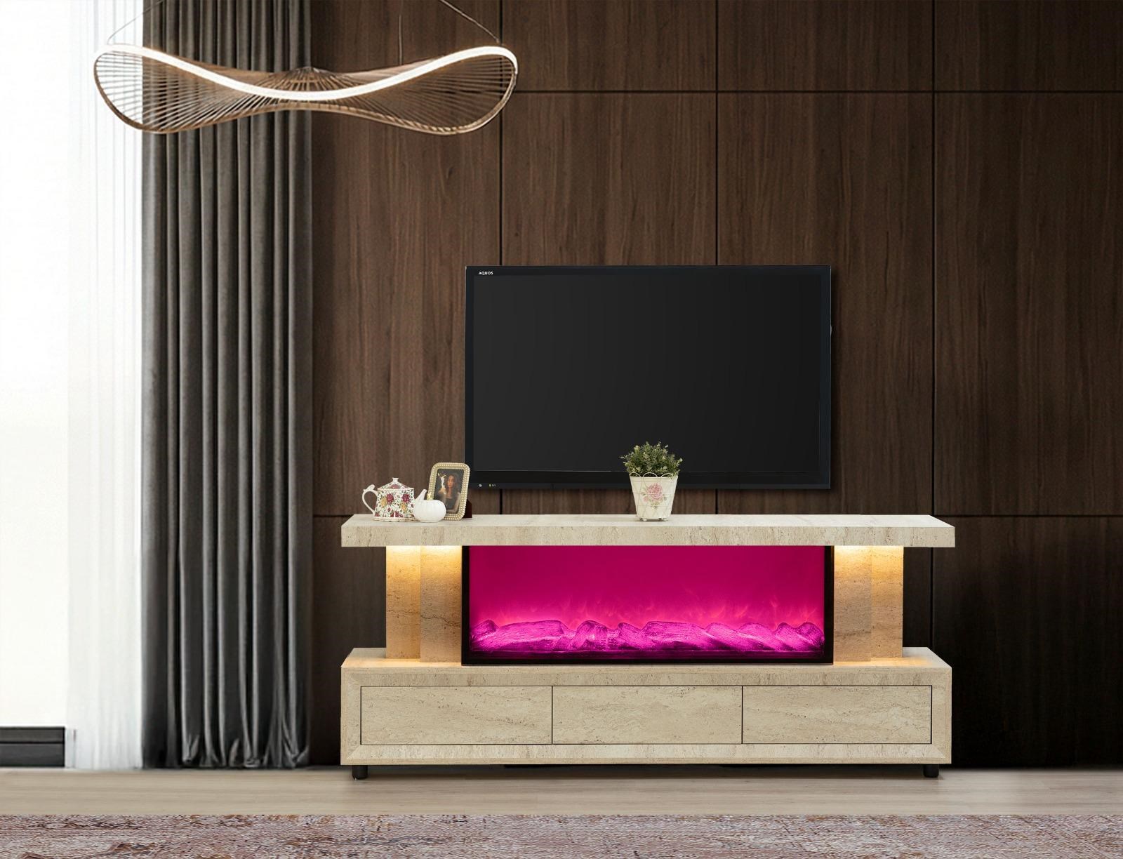 Efes Mdf Şömineli Traverten Bluetooth Bağlantılı Renk Değişimli Tv Ünitesi (RNGEFSTV1)